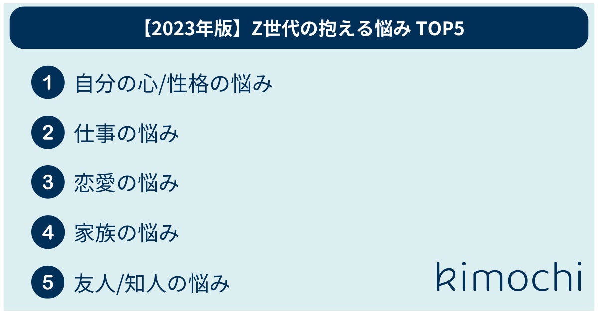 Z世代の悩みの中でも特に多いトップ3は以下の通り。