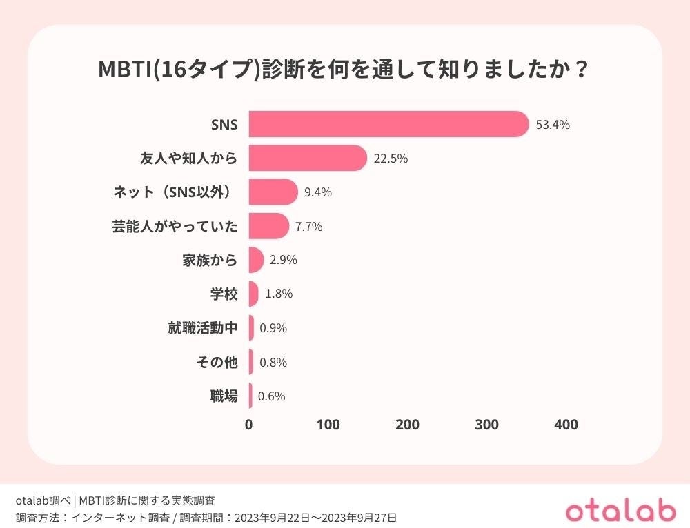 MBTI診断を知ったきっかけの1位は『SNS』、2位は『友人や知人から』