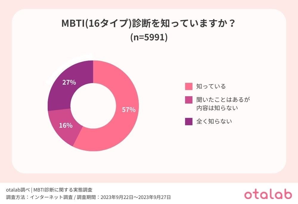 今回の調査では、まず最初に47都道府県在住のZ世代5,991人を対象に「MBTI(16タイプ)診断を知っていますか?」という質問を行った。