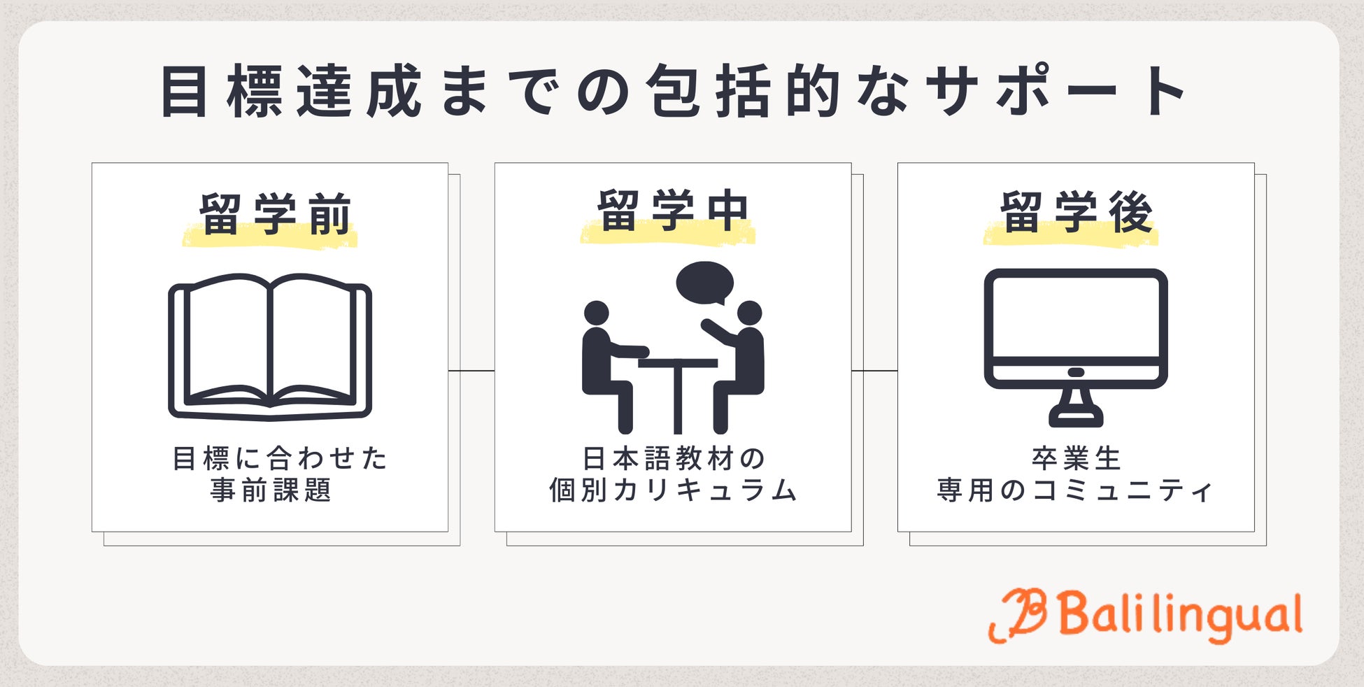【バリ島留学】留学期間中はもちろん、留学前から帰国以降も継続して学習をサポート! 留学中日本人スタッフに相談も可能。卒業生向けのイベントなど留学後も英語学習のモチベーションを保つサポートが充実!