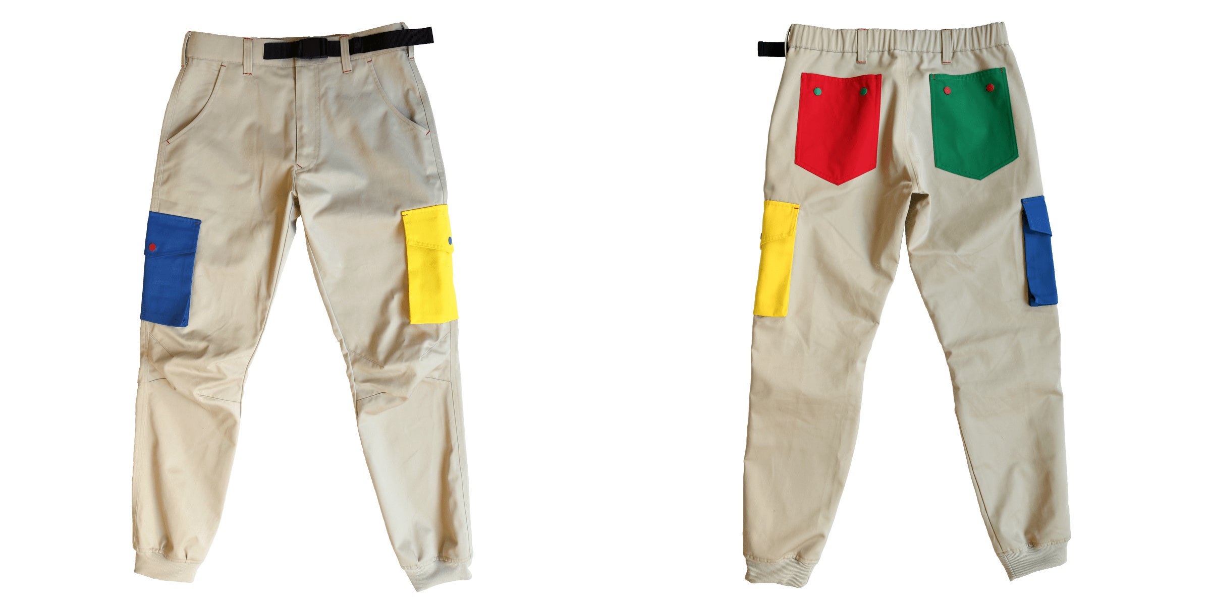 トップスと合わせやすいアースカラーをベースに、4色の機能的で大きなポケットがデザインアクセントに。細かなウエストが調整可能な「ウェビングベルト」。膝が曲げやすい「立体裁断」。裾は「リブ」仕様で、ロールアップ不要で地面にも擦ることがない。ポケットは、様々な工具・文房具の収納や出し入れを徹底考慮。工場で働く人の声とこだわりが詰まったワークパンツとなっている。
