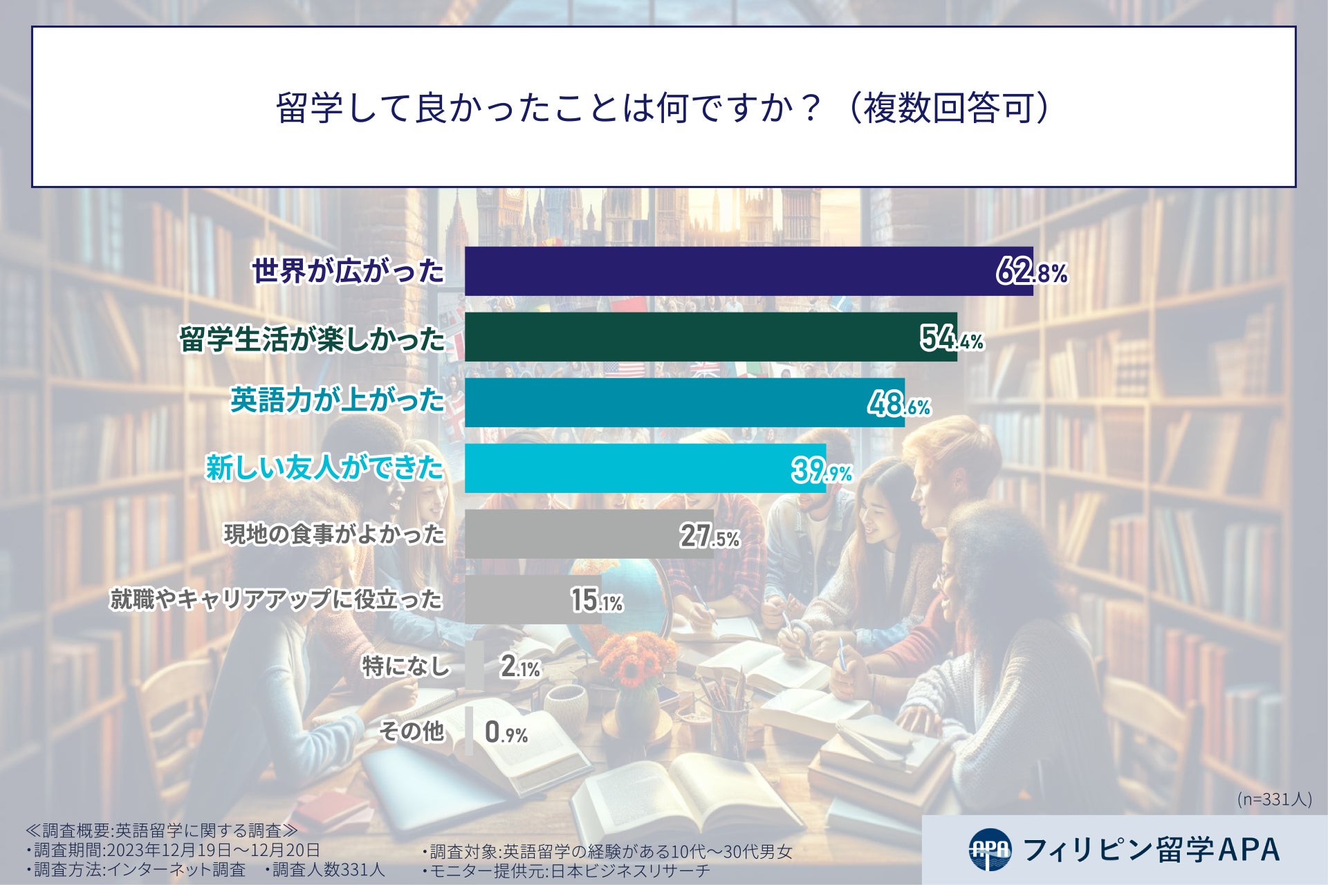 留学して良かったと答えた人は驚異の○○%!