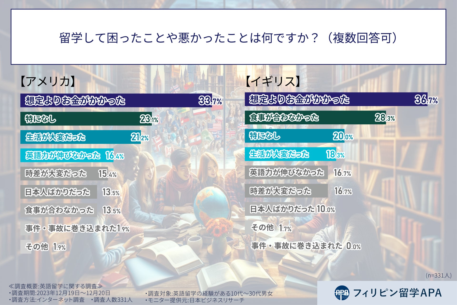やっぱり留学はお金がかかる!?英語留学で想定よりお金がかかったと答えた人は○○%!…留学経験者331人に国別の英語留学実態調査を実施 #Z世代Pick