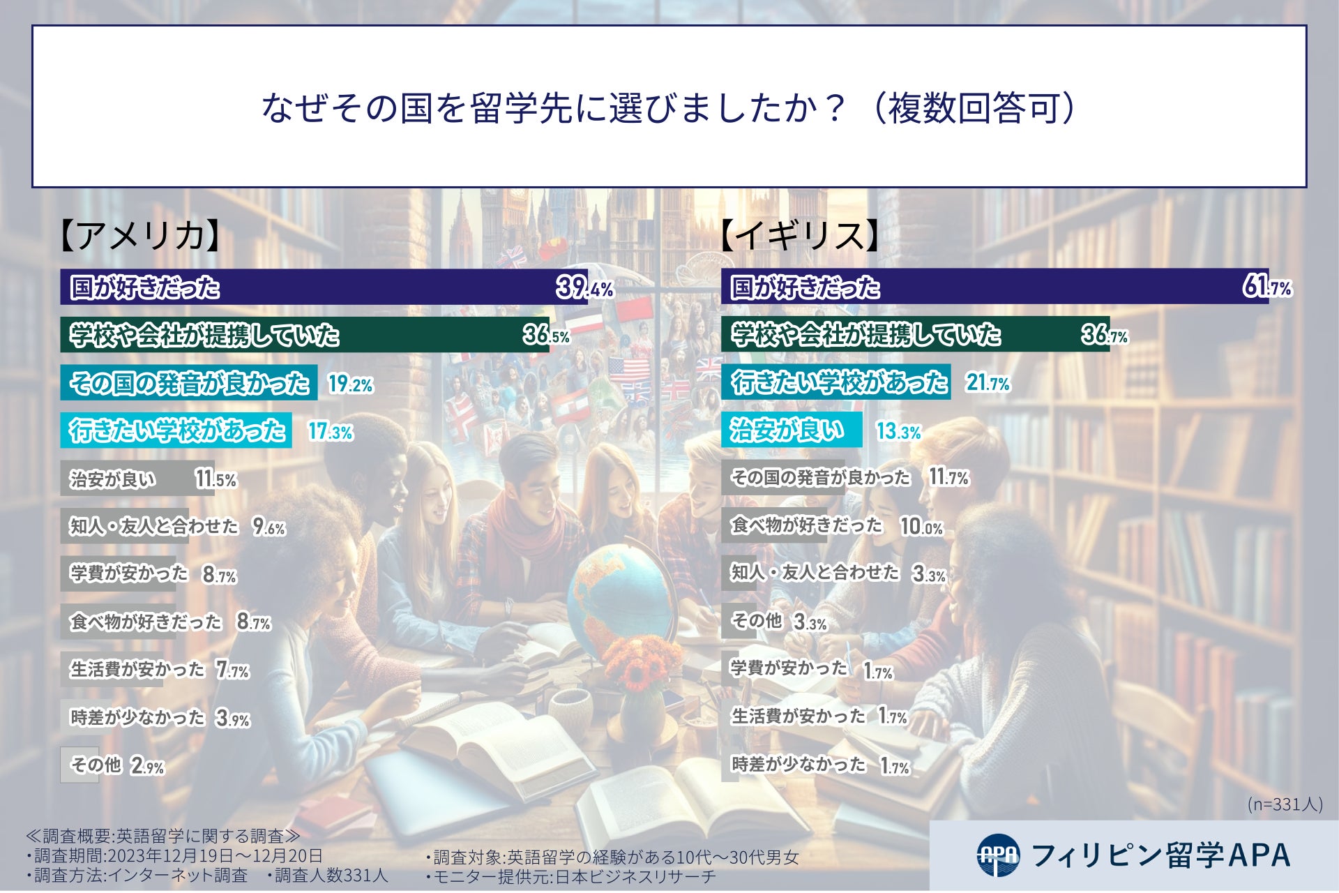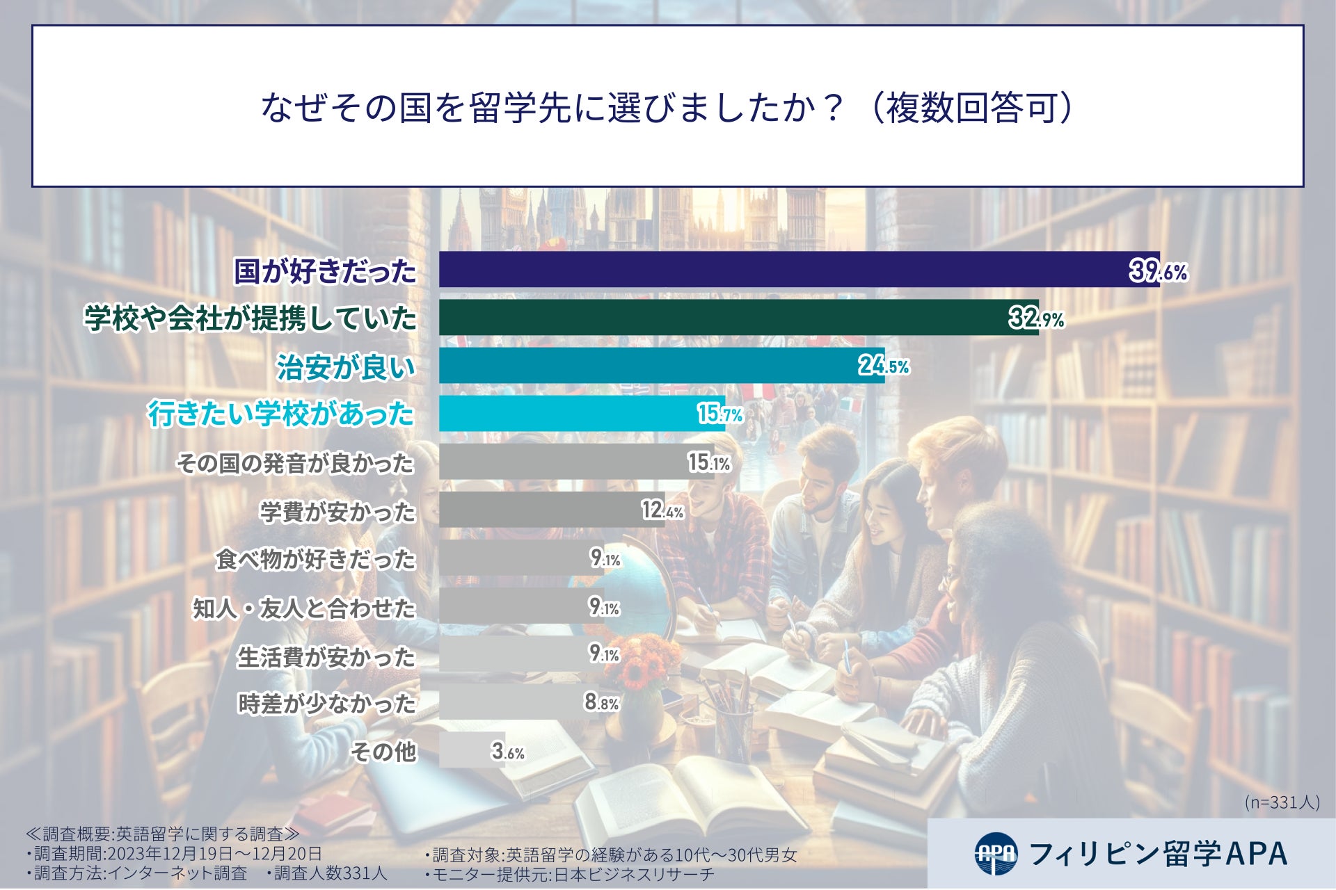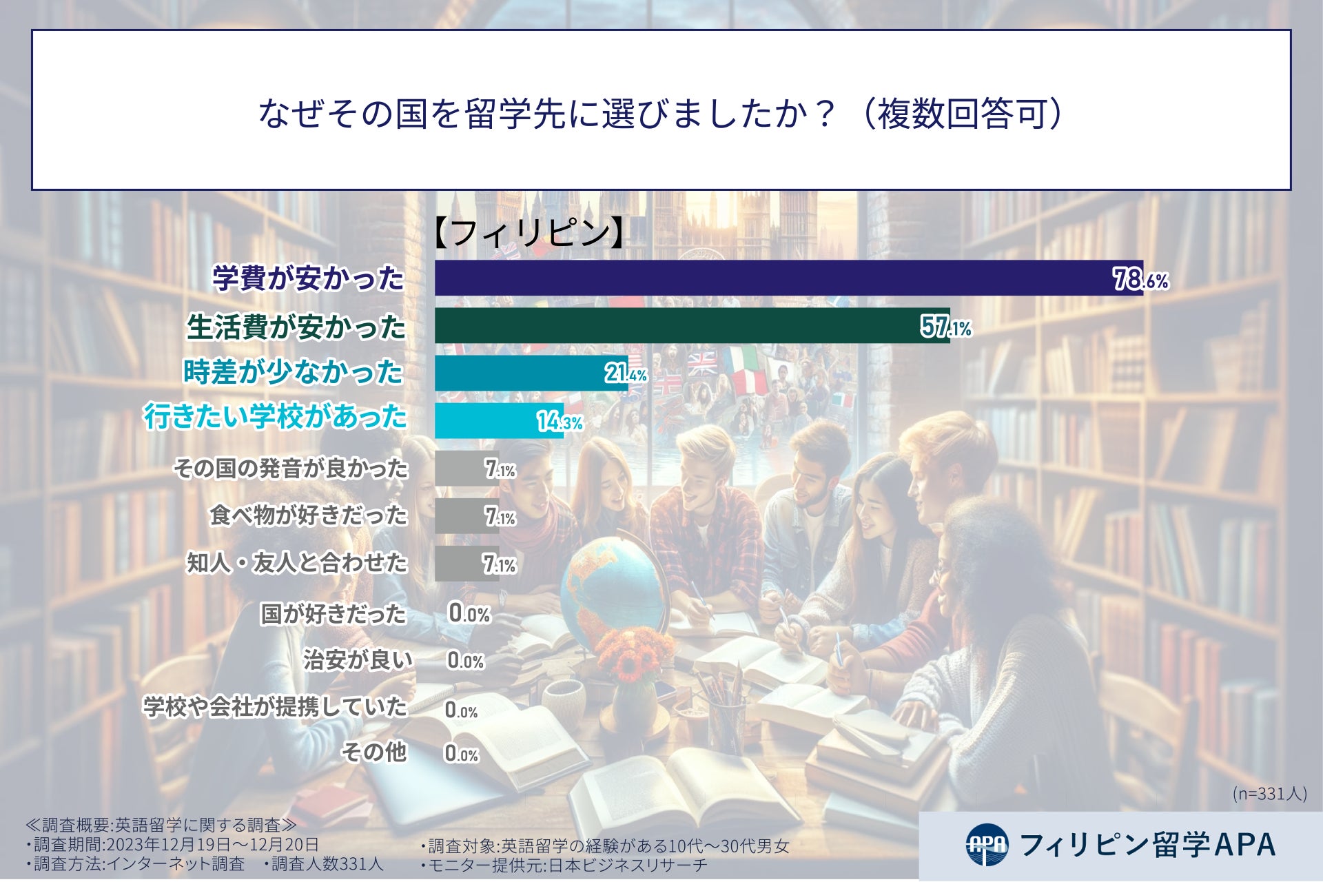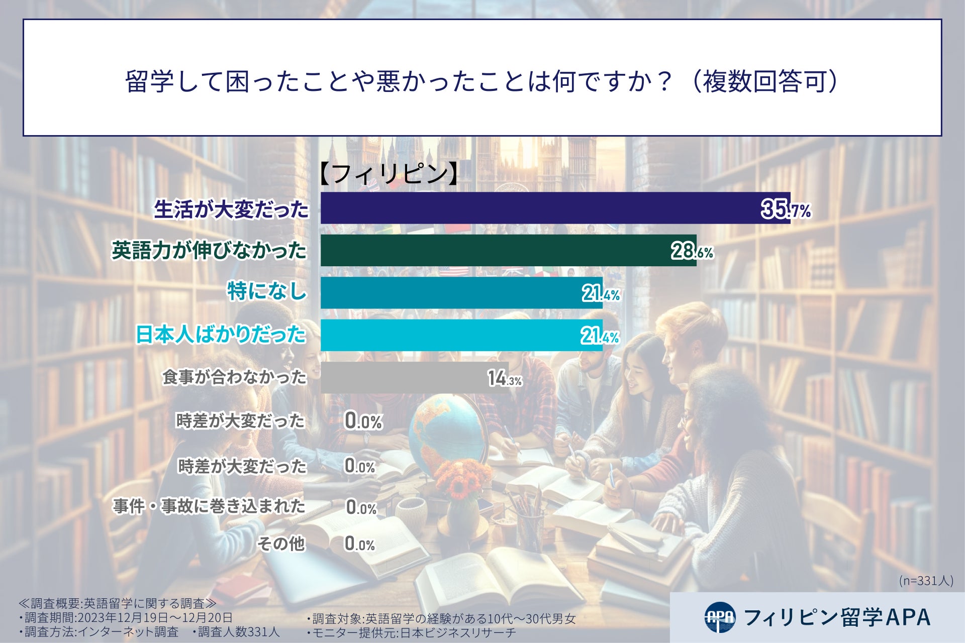そこで、フィリピン留学APAは、10代から30代の男女に対し、英語留学に関する調査を実施した。