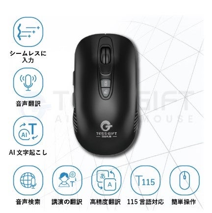 AI文字起こしマウス「TESS GIFT AI ライティングマウス」は、“マウスに話しかけるだけ”で翻訳とタイピングを同時に行い、面倒な多言語入力や議事録作成をスピードアップするデバイス。専用の翻訳機に文章を保存してコピペする必要がなく、PC内の場所を問わずシームレスに入力できるのが特長。
